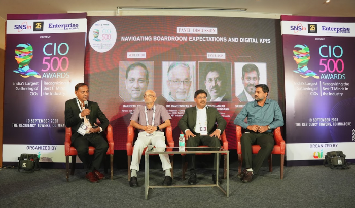 The second panel, on “Navigating Boardroom Expectations and Digital KPIs”, was moderated by Ranjeeth Bellary, Partner, Forensic & Integrity Services, EY. Panelists Dr. Raveendran N (Sakthi Finance Ltd./ABT Industries Ltd.), Ravi Shankar Shanmugasundarm (Kovai Medical Center and Hospital Ltd.), and Srikrishna Narasimhan (Pricol Group) delved into aligning digital strategies with boardroom expectations, focusing on governance, measurable KPIs, and the evolving role of CIOs as business leaders.